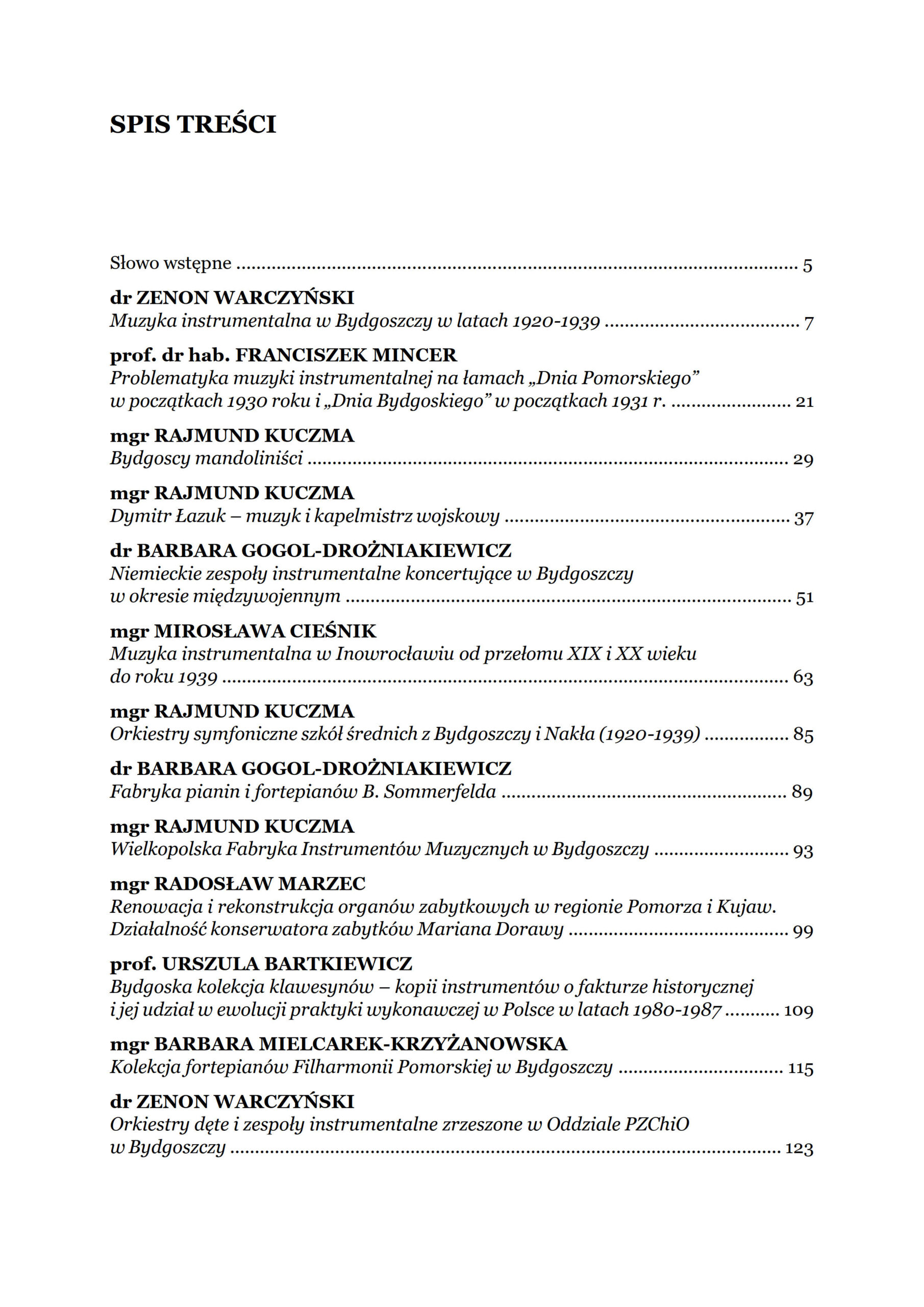 Rozległość problematyki badawczej oraz trudności w dotarciu do źródeł, czynią te badania otwartymi, wymagającymi w przyszłości kontynuacji. Zeszyt naukowy, który prezentuje wyniki dotychczasowych studiów, jako kolejne, piąte już ogniwo cyklu poświęconego utrwalaniu różnych przejawów kultury muzycznej regionu, kierujemy zarówno do badaczy historii tych ziem, zachęcając ich do podejmowania tematów szczegółowych, jak i do wszystkich zainteresowanych poznawaniem tradycji kulturowych regionu kujawsko-pomorskiego.